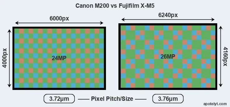 | Sensor Specs | Canon M200 | Fujifilm X-M5 |