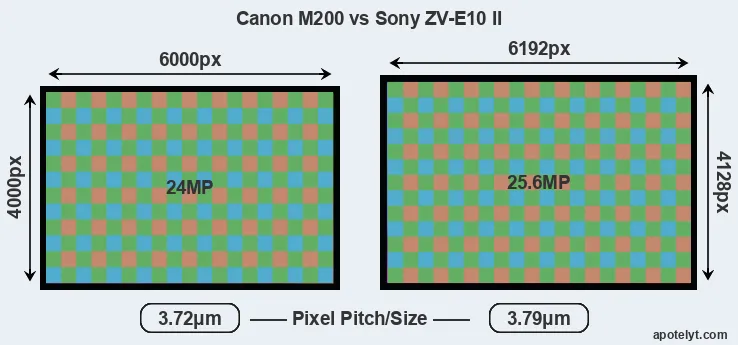 | Sensor Specs | Canon M200 | Sony ZV-E10 II |