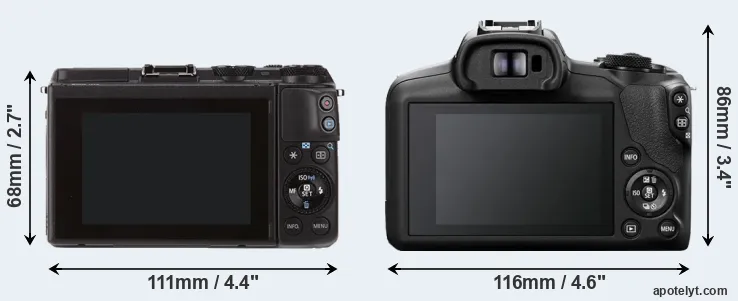 | 13. | Canon R50 | 116 mm | 86 mm | 69 mm | 375 g | 230 | n | Feb 2023 | US$ 679 | amazon.com | |