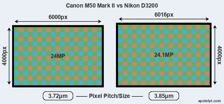 | Sensor Specs | Canon M50 Mark II | Nikon D3200 |