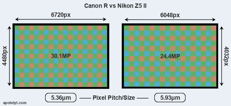 | Sensor Specs | Canon R | Nikon Z5 II |