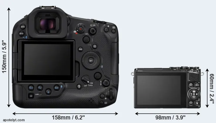 | 1. | Canon R1 | 158 mm | 150 mm | 87 mm | 1115 g | 1330 | Y | Jul 2024 | US$ 6 299 | amazon.com | |