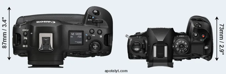 | 3. | Canon R3 | 150 mm | 143 mm | 87 mm | 1015 g | 760 | Y | Sep 2021 | US$ 5 999 | amazon.com | |