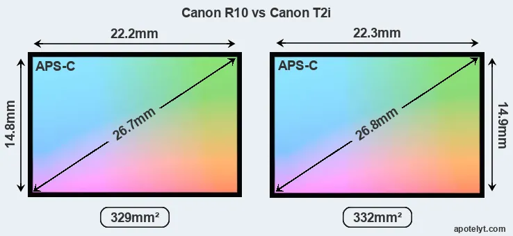 | Sensor Specs | Canon R10 | Canon T2i |