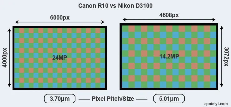 | Sensor Specs | Canon R10 | Nikon D3100 |