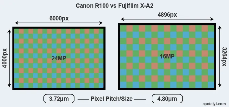 | Sensor Specs | Canon R100 | Fujifilm X-A2 |