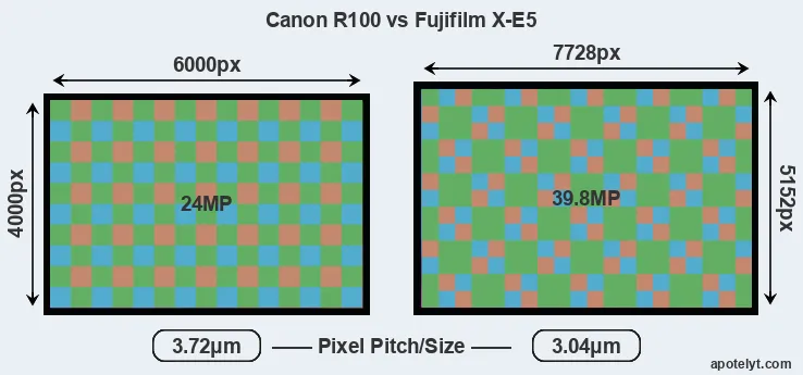 | Sensor Specs | Canon R100 | Fujifilm X-E5 |