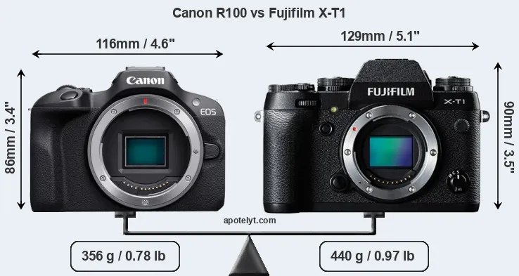 | Body Specs | Canon R100 | Fujifilm X-T1 |