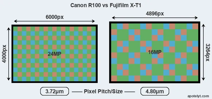 | Sensor Specs | Canon R100 | Fujifilm X-T1 |