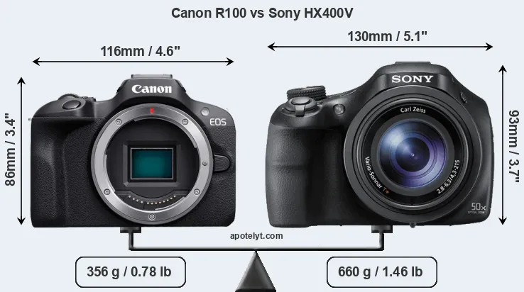 Specifications: Canon R100 vs Sony HX400V