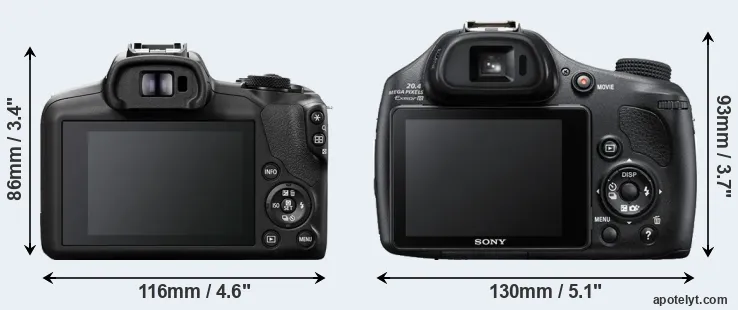 Going beyond this snapshot of core features and characteristics, what are the differences between the Canon EOS R100 and the Sony Cyber-shot DSC-HX400V? Which one should you buy? Read on to find out how these two cameras compare with respect to their body size, their imaging sensors, their shooting features, their input-output connections, and their reception by expert reviewers.