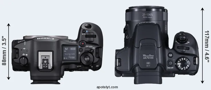 The above size and weight comparisons are to some extent incomplete and possibly misleading, as the SX70 has a lens built in, whereas the R5 Mark II is an interchangeable lens camera that requires a separate lens. Attaching the latter will add extra weight and bulk to the setup.
