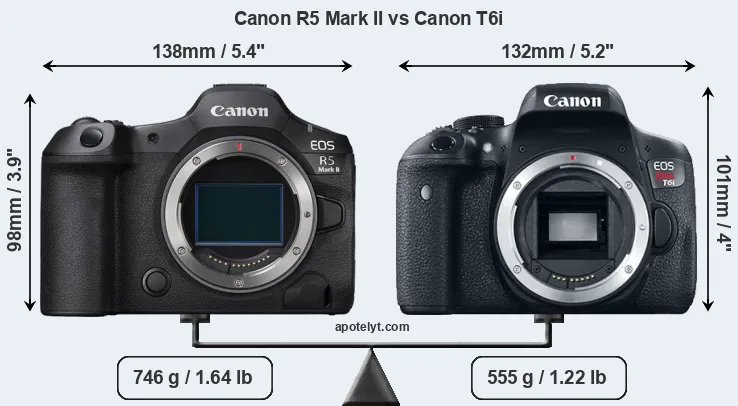 Specifications: Canon R5 Mark II vs Canon T6i