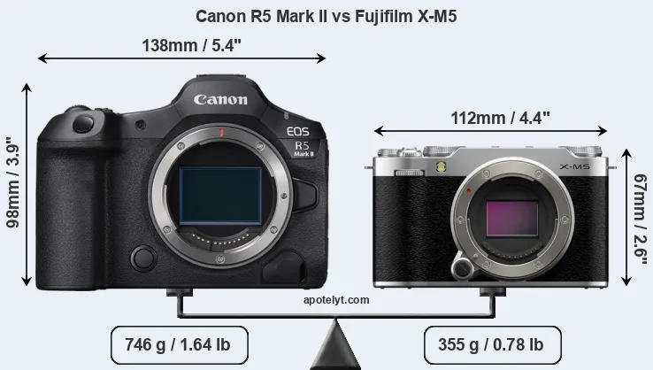 Specifications: Canon R5 Mark II vs Fujifilm X-M5