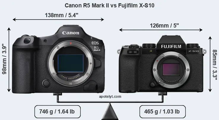 Specifications: Canon R5 Mark II vs Fujifilm X-S10