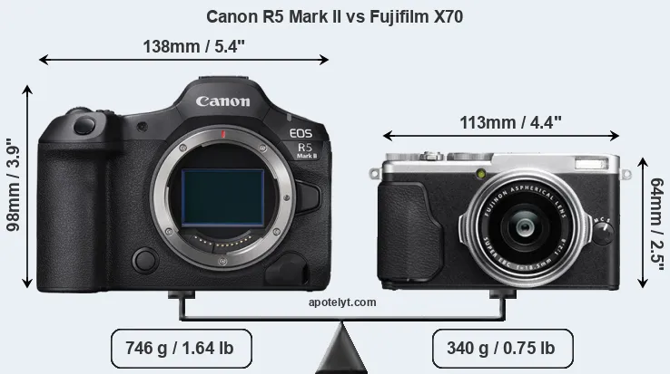 Specifications: Canon R5 Mark II vs Fujifilm X70