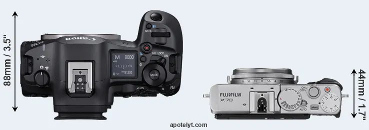 | Body Specs | Canon R5 Mark II | Fujifilm X70 |