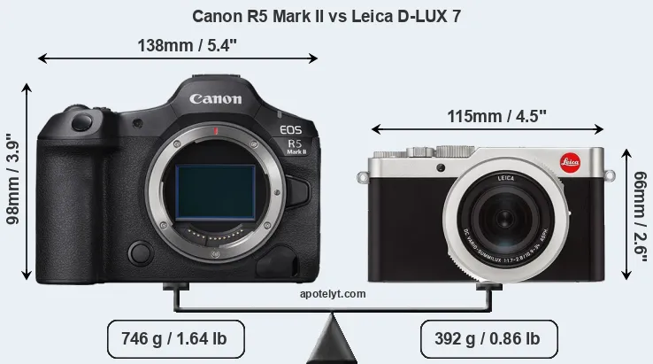 Specifications: Canon R5 Mark II vs Leica D-LUX 7