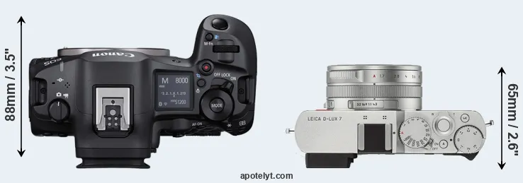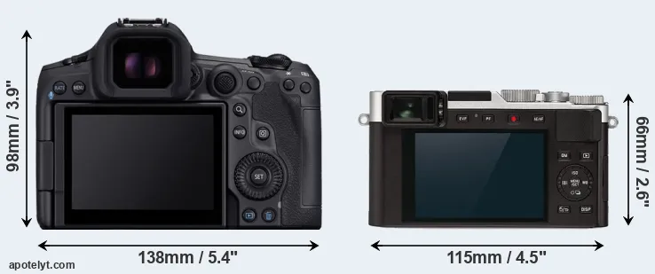 The above size and weight comparisons are to some extent incomplete and possibly misleading, as the D-LUX 7 has a lens built in, whereas the R5 Mark II is an interchangeable lens camera that requires a separate lens. Attaching the latter will add extra weight and bulk to the setup.