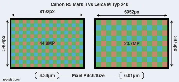 | Sensor Specs | Canon R5 Mark II | Leica M Typ 240 |