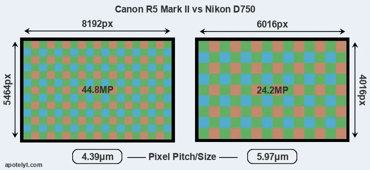 | Sensor Specs | Canon R5 Mark II | Nikon D750 |