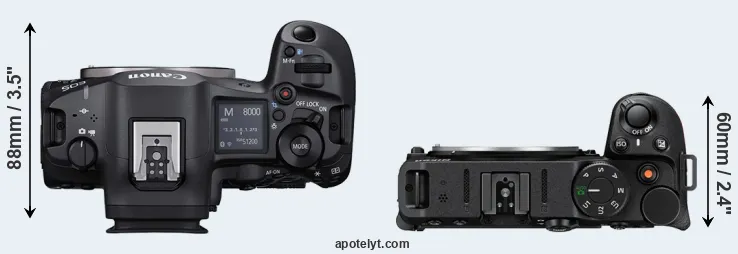 | 3. | Canon R1 | 158 mm | 150 mm | 87 mm | 1115 g | 1330 | Y | Jul 2024 | US$ 6 299 | amazon.com | |