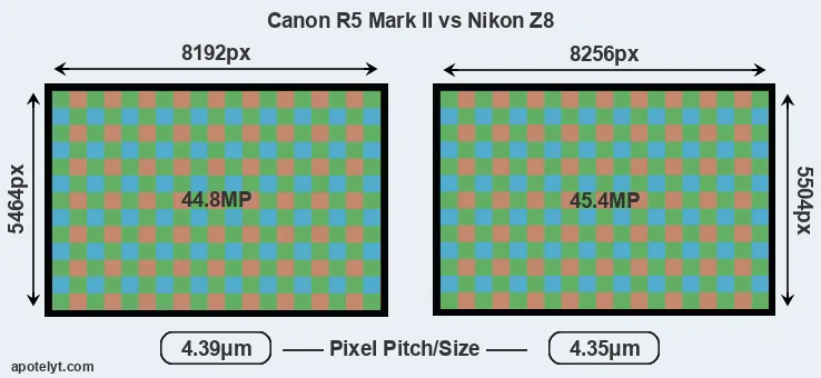 | Sensor Specs | Canon R5 Mark II | Nikon Z8 |