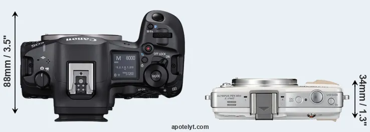 Going beyond this snapshot of core features and characteristics, what are the differences between the Canon EOS R5 Mark II and the Olympus PEN E-PM2? Which one should you buy? Read on to find out how these two cameras compare with respect to their body size, their imaging sensors, their shooting features, their input-output connections, and their reception by expert reviewers.