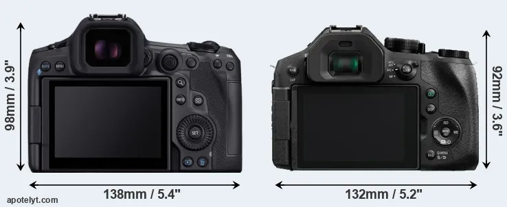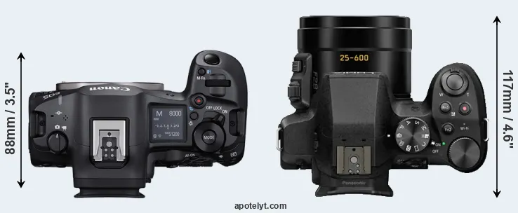 The above size and weight comparisons are to some extent incomplete and possibly misleading, as the FZ330 has a lens built in, whereas the R5 Mark II is an interchangeable lens camera that requires a separate lens. Attaching the latter will add extra weight and bulk to the setup.