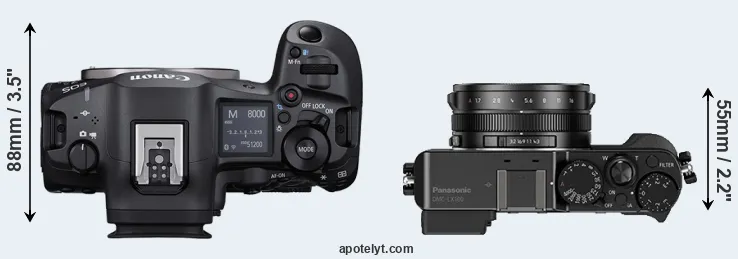 The above size and weight comparisons are to some extent incomplete and possibly misleading, as the LX100 has a lens built in, whereas the R5 Mark II is an interchangeable lens camera that requires a separate lens. Attaching the latter will add extra weight and bulk to the setup.