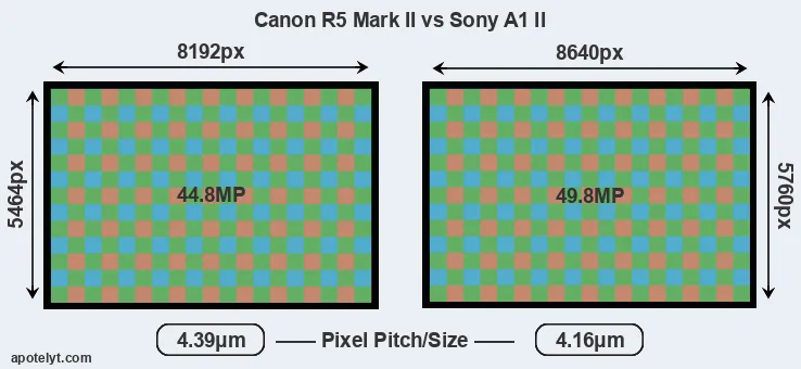 | Sensor Specs | Canon R5 Mark II | Sony A1 II |