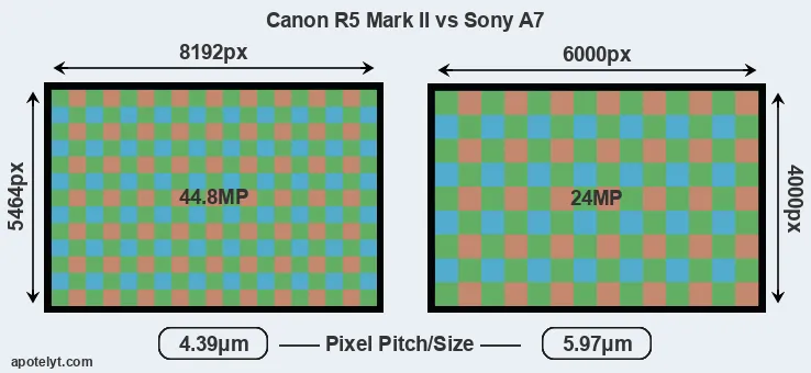 | Sensor Specs | Canon R5 Mark II | Sony A7 |