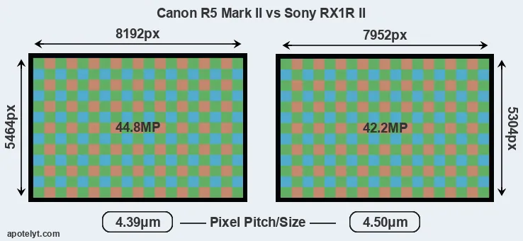 | Sensor Specs | Canon R5 Mark II | Sony RX1R II |