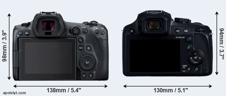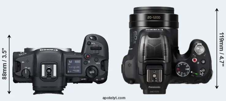 The above size and weight comparisons are to some extent incomplete and possibly misleading, as the FZ82D has a lens built in, whereas the R5 is an interchangeable lens camera that requires a separate lens. Attaching the latter will add extra weight and bulk to the setup.