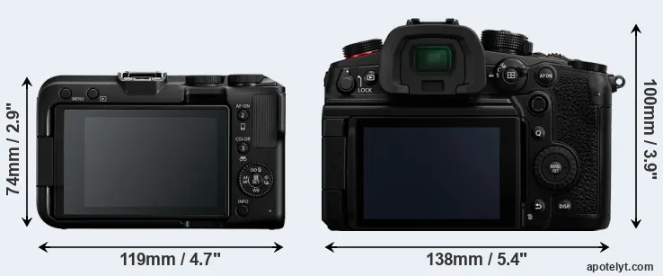| 13. | Panasonic G9 II | 134 mm | 102 mm | 90 mm | 658 g | 390 | Y | Sep 2023 | US$ 1 899 | amazon.com | |