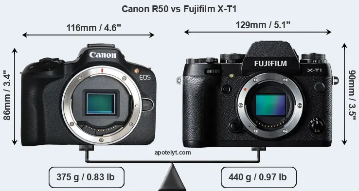 | Body Specs | Canon R50 | Fujifilm X-T1 |