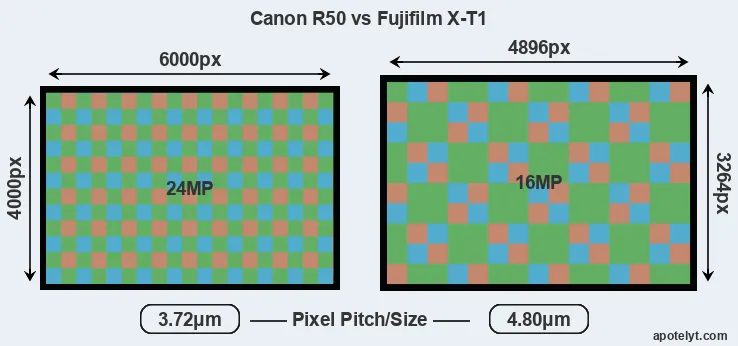 | Sensor Specs | Canon R50 | Fujifilm X-T1 |