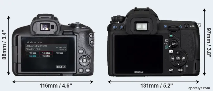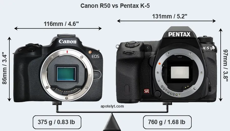 Specifications: Canon R50 vs Pentax K-5
