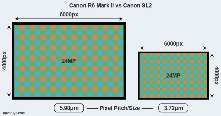 | Sensor Specs | Canon R6 Mark II | Canon SL2 |