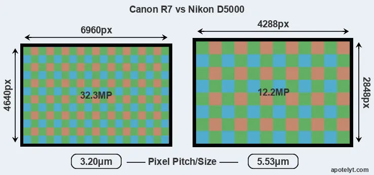 | Sensor Specs | Canon R7 | Nikon D5000 |