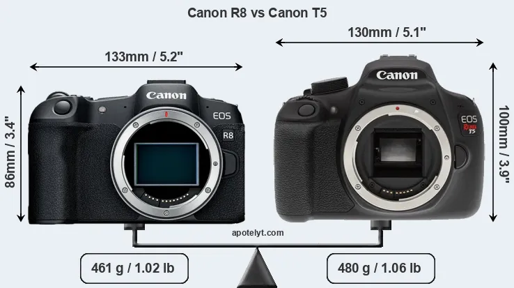 | Body Specs | Canon R8 | Canon T5 |