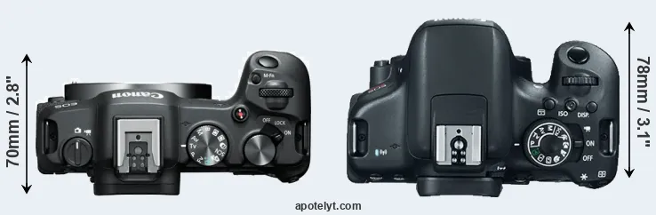 The Canon EOS R8 and the Canon EOS Rebel T6i (labelled Canon 750D in some countries) are two digital cameras that were officially introduced, respectively, in February 2023 and February 2015. The R8 is a mirrorless interchangeable lens camera, while the T6i is a DSLR. The cameras are based on a full frame (R8) and an APS-C (T6i) sensor. Both cameras offer a resolution of 24 megapixels.