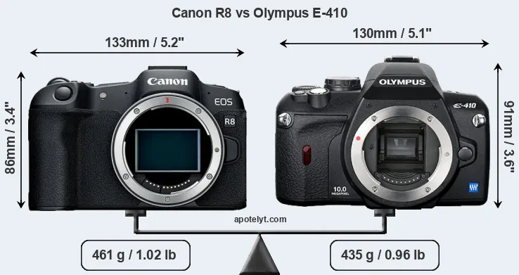 Size Canon R8 vs Olympus E-410