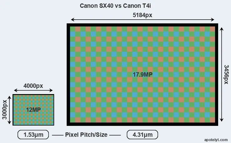 | Sensor Specs | Canon SX40 | Canon T4i |