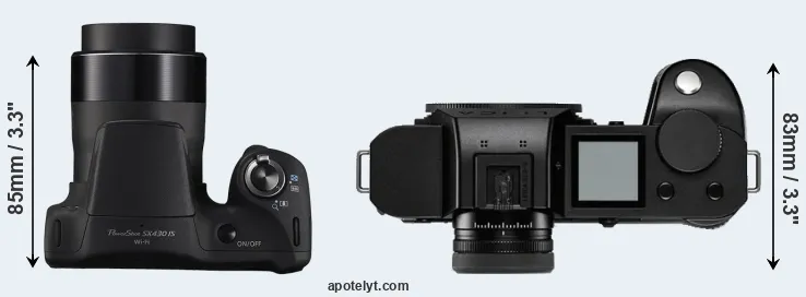 The above size and weight comparisons are to some extent incomplete and possibly misleading, as the SX430 has a lens built in, whereas the Leica SL2-S is an interchangeable lens camera that requires a separate lens. Attaching the latter will add extra weight and bulk to the setup.