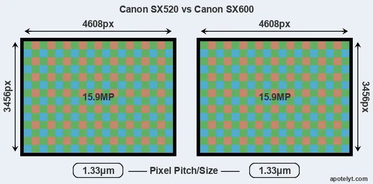 | Sensor Specs | Canon SX520 | Canon SX600 |