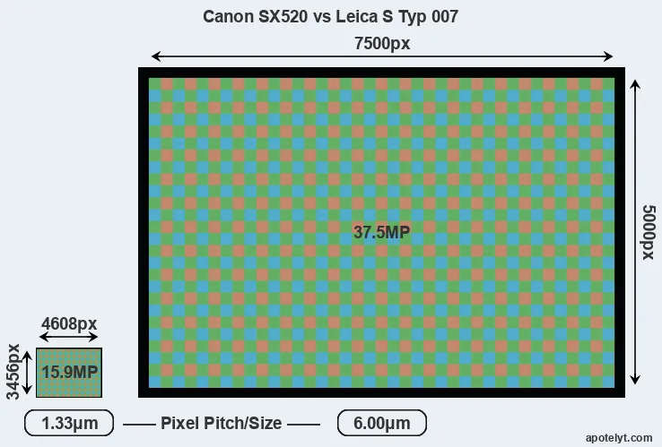 | Sensor Specs | Canon SX520 | Leica S Typ 007 |