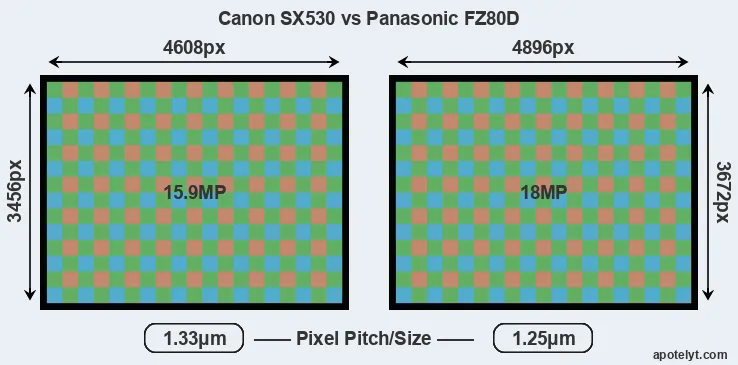 | Sensor Specs | Canon SX530 | Panasonic FZ80D |