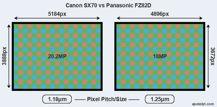 | Sensor Specs | Canon SX70 | Panasonic FZ82D |