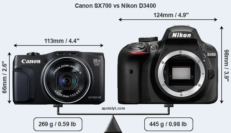 | Body Specs | Canon SX700 | Nikon D3400 |